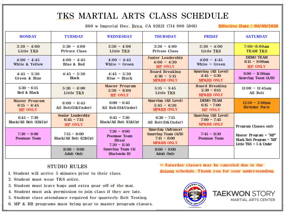 Schedule for Brea Location